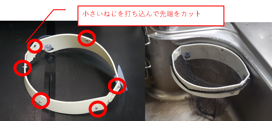 ごみ袋や三角ネットが簡単に取り付けられない