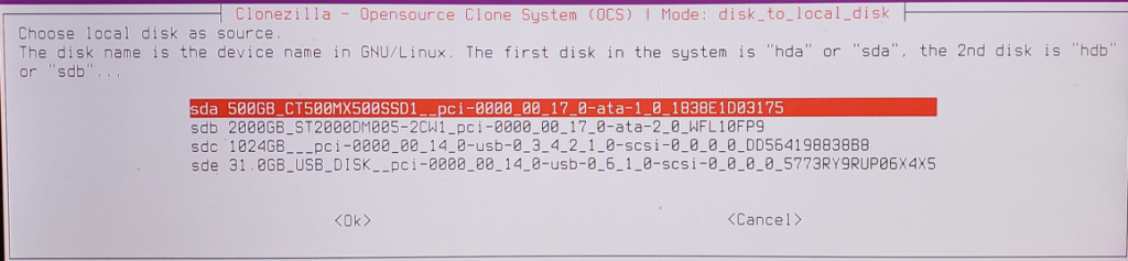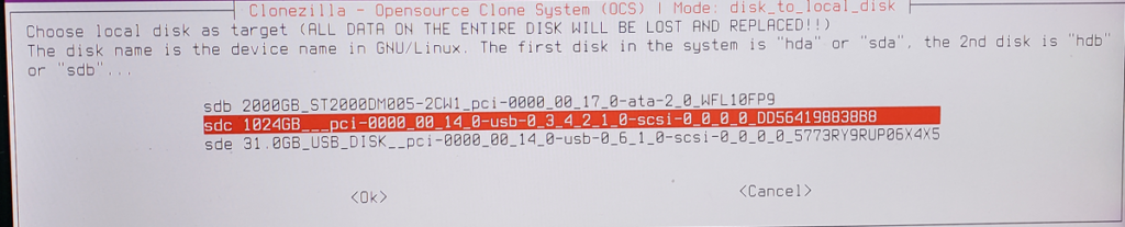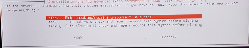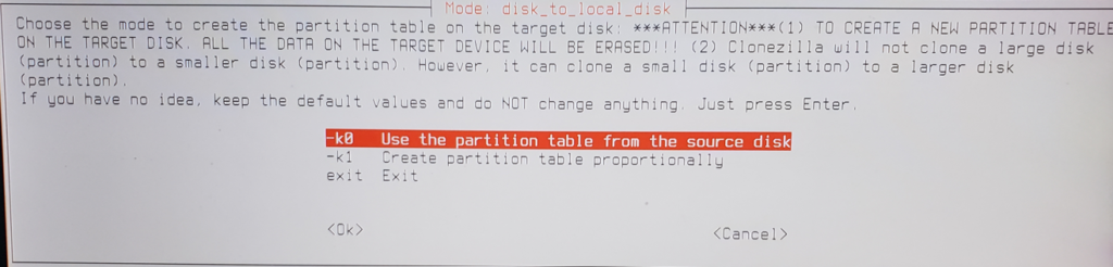 「-k0」クローン元のパーティションテーブルをそのままコピーする を選択