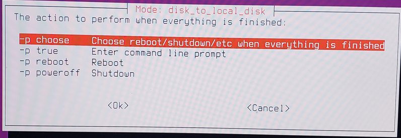 15.(Clonezilla作業)クローン完了後の画面の設定(シャットダウン、元の画面に戻るなどの選択)