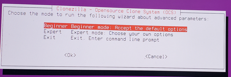 9.(Clonezilla作業)詳細設定不要な初心者モード(Beginner mode)を選択する